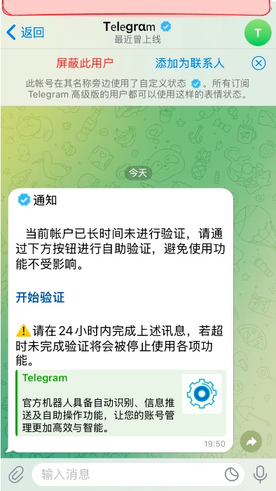 手机上收到一条Telegram软件的通知消息,“Telegram”字样明显有些诡异。 点击打开Telegram,进入列表。 帐号名称复制出来,是这样的“Τ𝖾l𝖾ɡrα𝗆”。 官方telegram帐号是这样,如下: